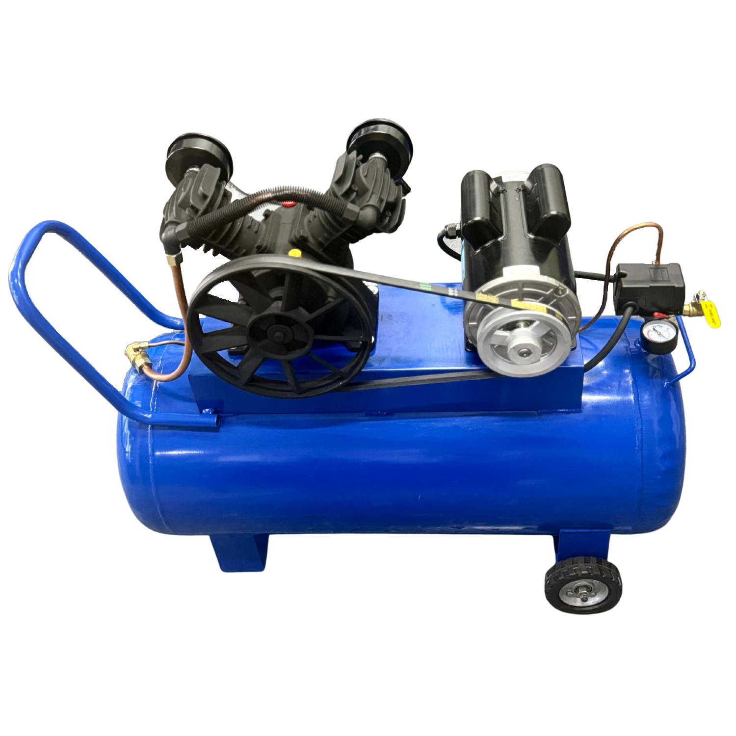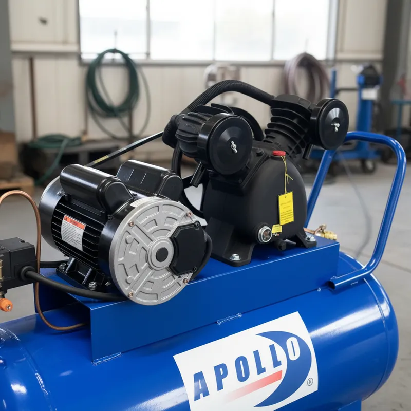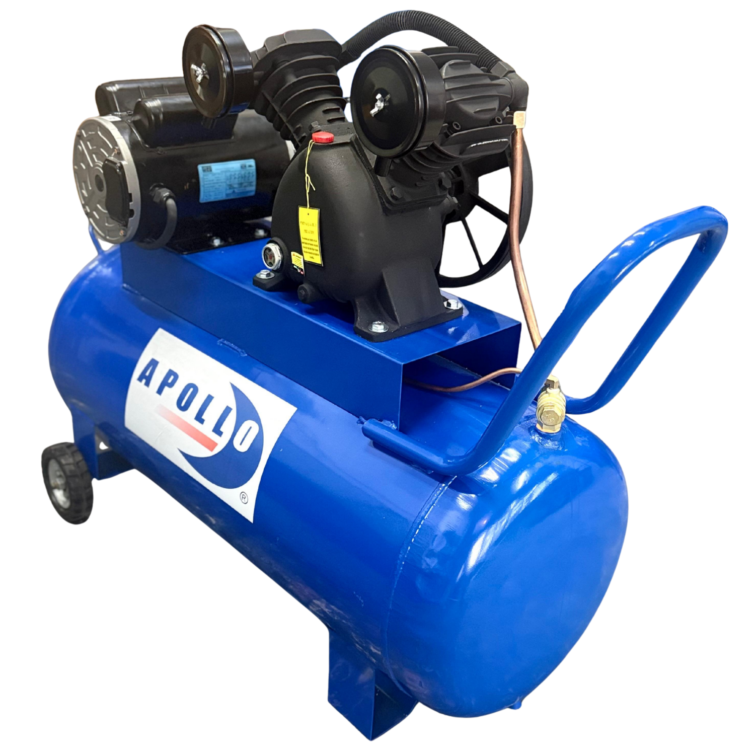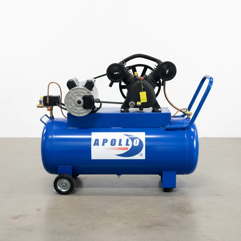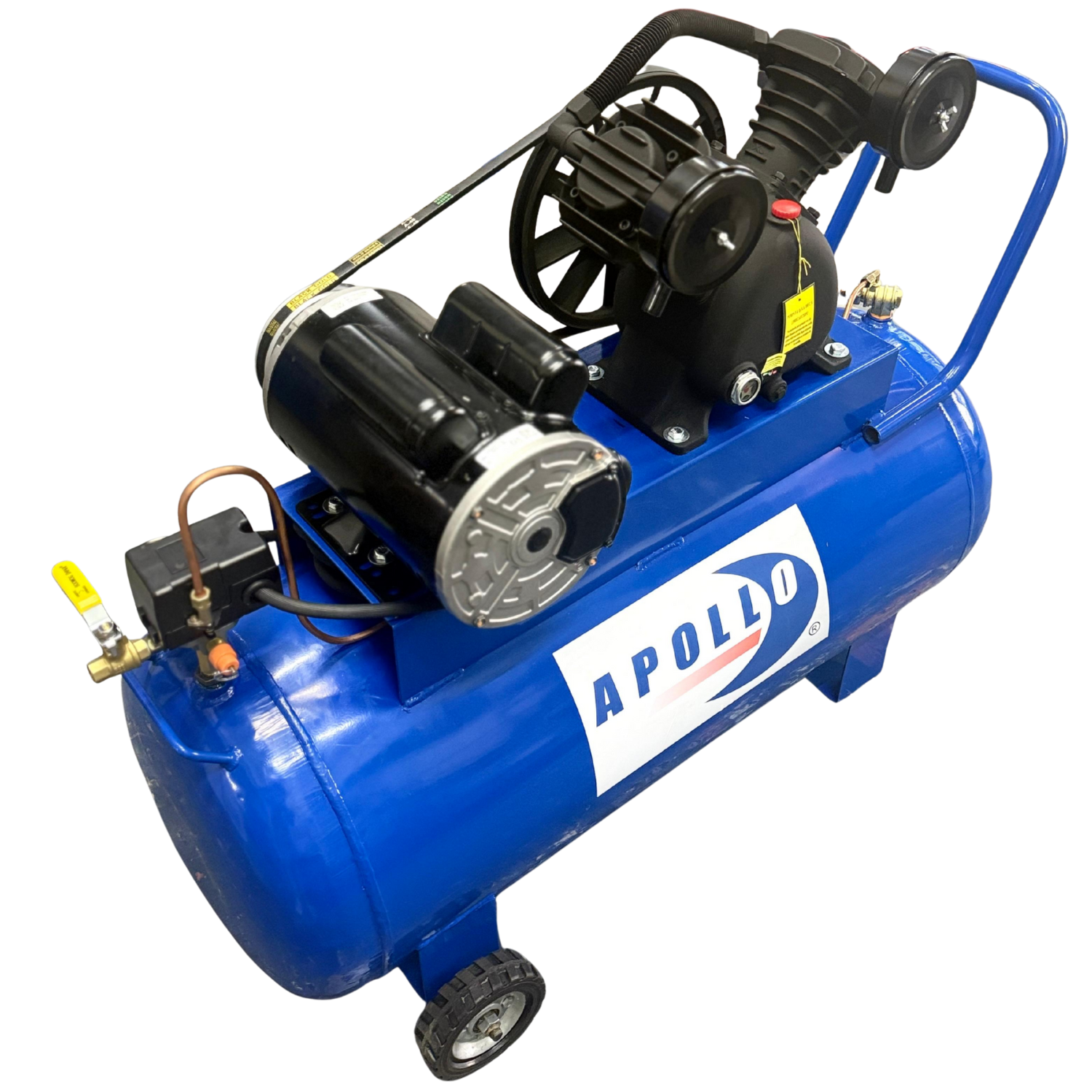 Compresor de aire Apollo Kompressor es el perfecto compañero para utilizar el tanque espumador Apollo Foamer, utilizados ampliamente juntos generarán la espuma ideal tipo "nieve" o "merengue" que lavará a la perfección cualquier auto sobre todo en autolavados. El Apollo Kompressor es igual y ampliamente utilizado en tareas en donde se requiera de utilizar aire a presión sin que se tenga que estar rellenando frecuentemente gracias a su tanque de 100 litros, como por ejemplo: inflar balones deportivos, llantas de bicicleta y llantas de automóviles con velocidad y facilidad, entre otras tareas, equipado con ruedas para un fácil manejo y desplazamiento. • ESPECIFICACIONES TECNICAS: - Cabezal PS10 de 2 pistones de 51 mm en "V" - Potencia: 2 HP - Presión máxima: 115 psi - Presión de trabajo: 80 - 110 psi - Desplazamiento: 8.2 CFM - Voltaje: 220V - Tipo de Corriente: Bifásica - Capacidad del Tanque: 100 litros • DIMENSIONES Y PESO - Largo: 90 cm - Ancho: 35 cm - Alto: 70 cm - Peso: 60 kg